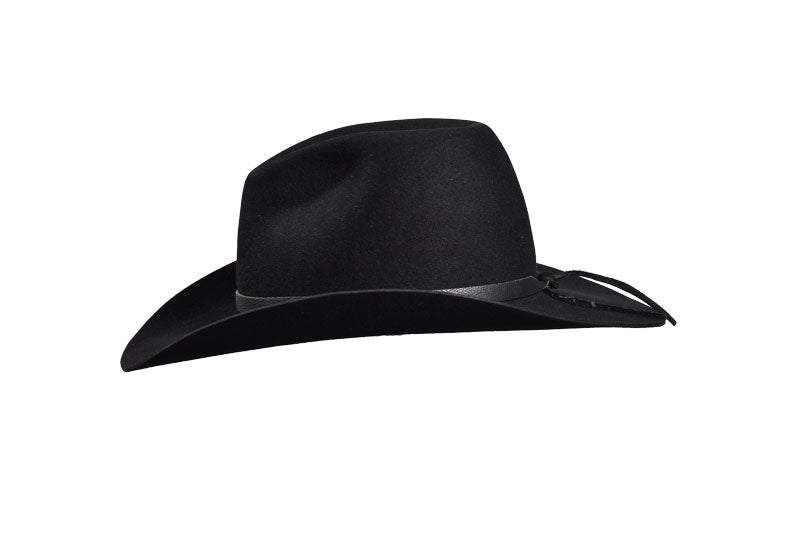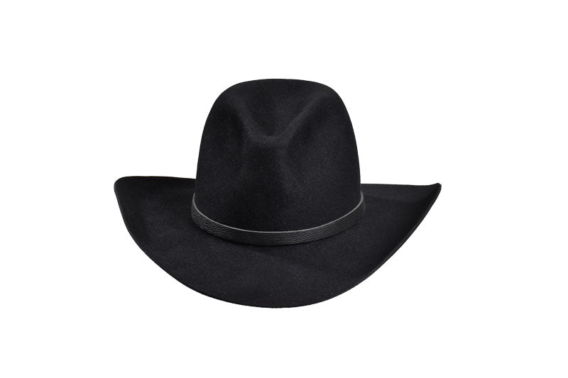 Accented with a smooth black leather hatband, this design captures understated elegance. With no extra ornamentation, the focus stays on the craftsmanship, quality of the felt, and the enduring Western profile. Lightweight yet strong, it’s built for those who value authentic cowboy tradition with a modern, minimal edge.